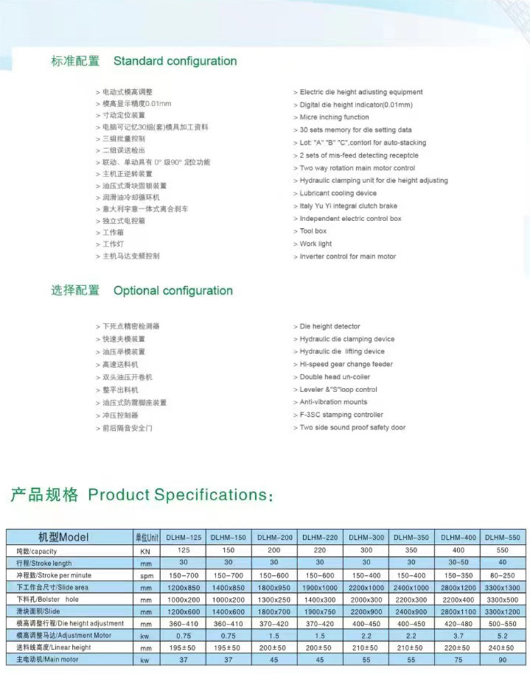 DLHM125T~500T龙门式高速精密六导柱冲床