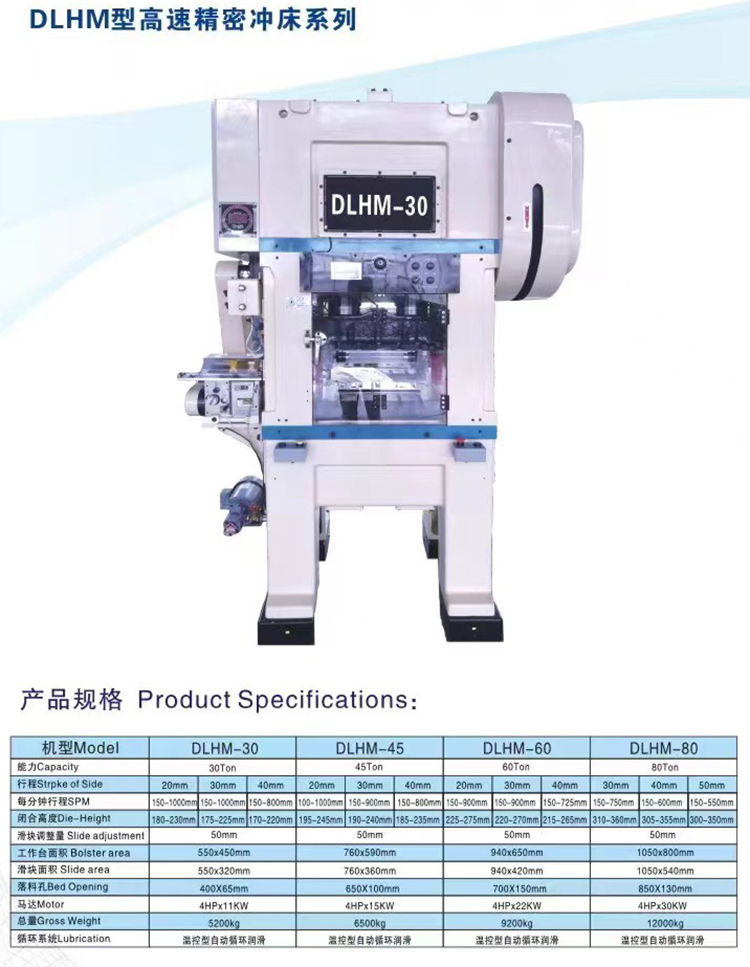 DLHM125T~500T龙门式高速精密六导柱冲床